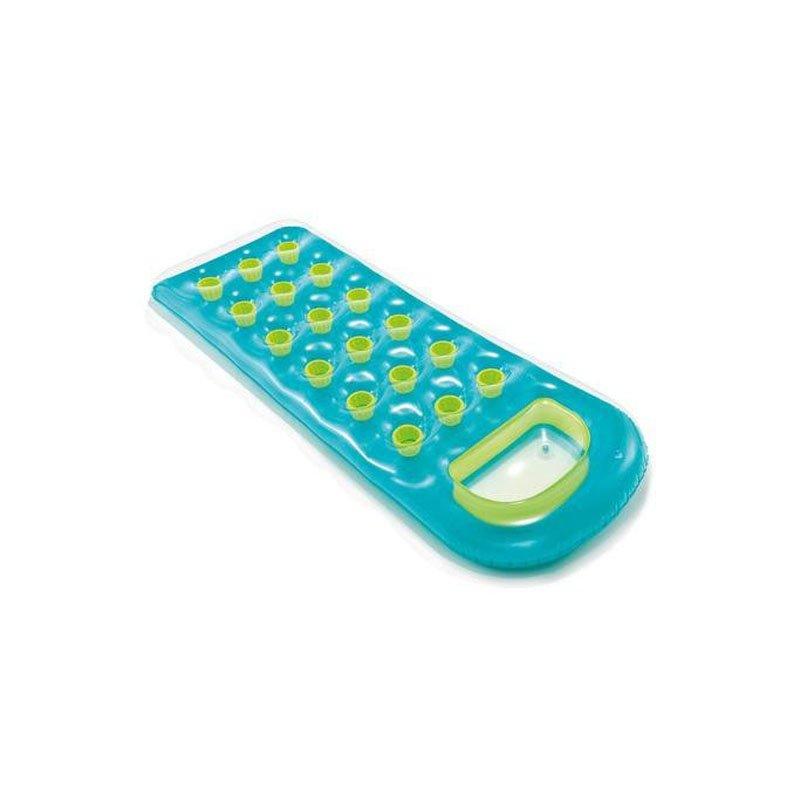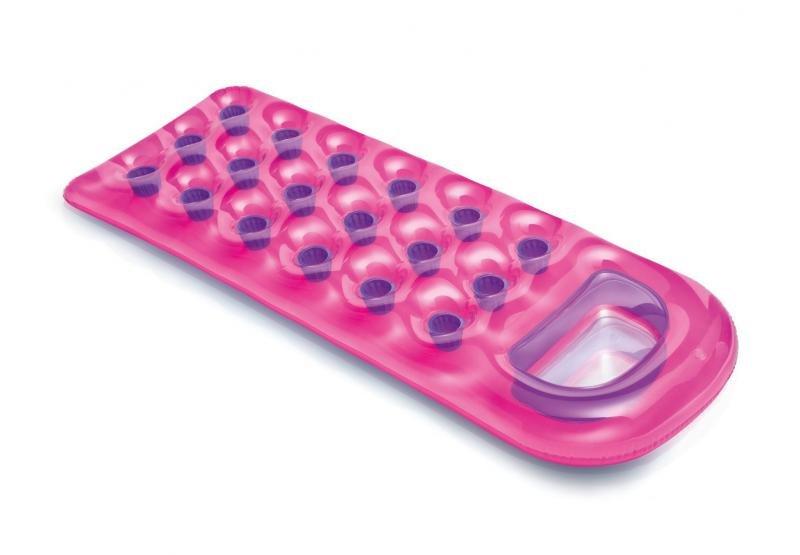 Lehátko nafukovací s oknem Intex 59895Nafukovací lehátko o rozměrech 188×71 cm, s "FRESH" vzhledem a integrovaným průhledným polštářem. 2 vzduchové komory a vinyl o tloušťce 0,28 mm zajišťují pevnost a příjemný komfort při ležení.