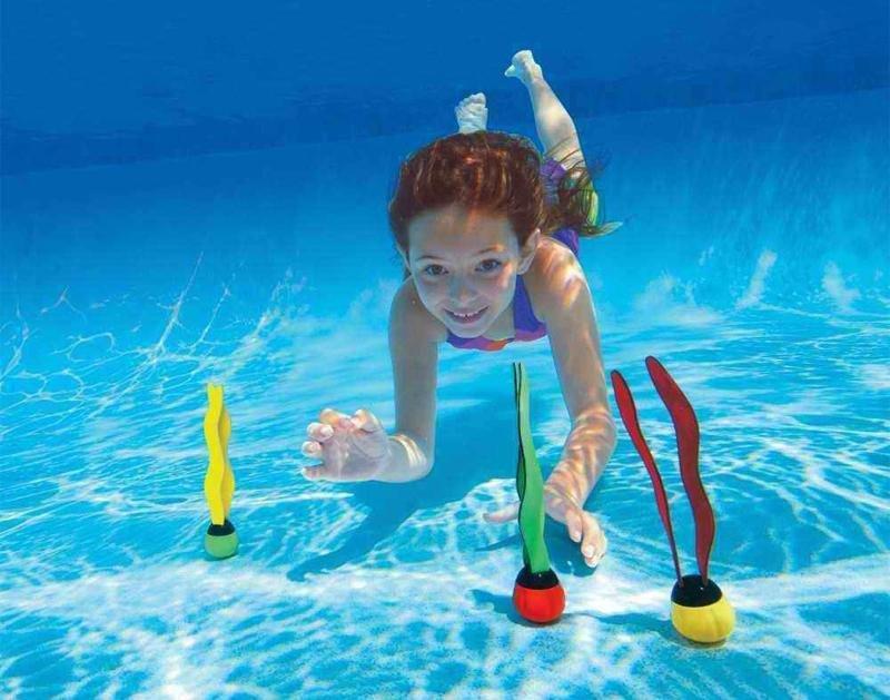 Míčky se stužkou pro potápění.Míček se po vhození do bazénku postaví na jeho dno a děti tak mají výbornou hračku pro procvičení potápění.Technický popis: