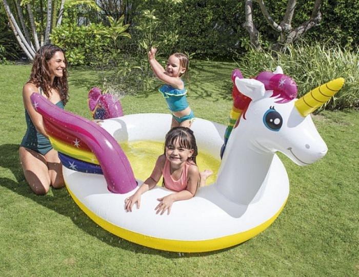 Ak máte radi jednorožce, odporúčame detský nafukovací bazén Intex so sprchou v dizajne UNICORN. Pre funkčnosť sprchy ju stačí pripojiť k záhradnej hadici. Sprcha je vedená chvostom jednorožca.