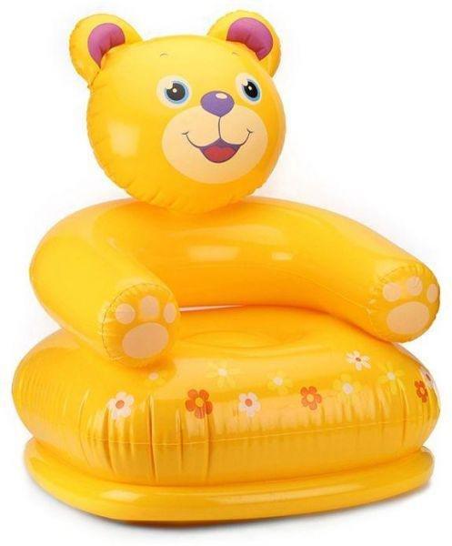 Dětské nafukovací křesílko s hlavou oblíbených zvířátek. Skvěle se hodí do všech dětských pokojů. Pohodlně se usaď a přečti si hezkou knížku, nebo se podívej na pohádku v televizi. Křeslo se hodí i na zahradu, pozvi kamarády a udělej párty!