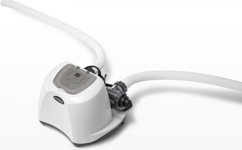 Chlorinátor s elektrolýzou soli znižuje potrebu chlóru až o 70 %, vhodný pre nadzemné bazény do 26,5 m3 s filtráciou od 2 650 l/h.Chlorinátor s integrovaným systémom elektrolýzy soli výrazne znižuje množstvo potrebného chlóru až o 70 %, čo prispieva k príjemnejšej a šetrnejšej úprave vody v bazéne. Tento model je vhodný pre všetky nadzemné bazény Intex i iné značky s objemom vody do 26,5 m3.