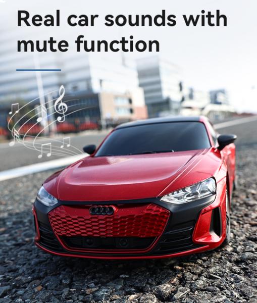 Krásný RC model elektromobilu Audi RS na dálkové ovládání se zvukovými a světelnými efekty.