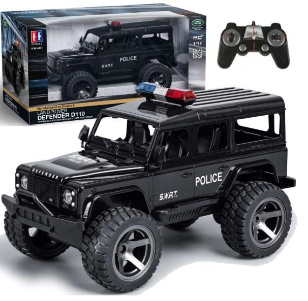 Tento licencovaný RC model Land Rover Defender Police S.W.A.T. v měřítku 1:14 od značky Double Eagle zaujme precizním zpracováním a odolným ABS plastem. Pohon zadních kol zajišťují velká kola s měkkými pneumatikami a hlubokým vzorkem, které umožňují jízdu jak v interiéru, tak venku. Ovládání je jednoduché díky páčkovému ovladači, který umožňuje pohyb vpřed, vzad i zatáčení doleva a doprava. Pro lepší zážitek jsou na modelu funkční přední světla a na střeše blikající maják. Zvuk sirény a blikání majáku spustíte jedním tlačítkem, což přidává na autentičnosti a zábavě při jízdě.
