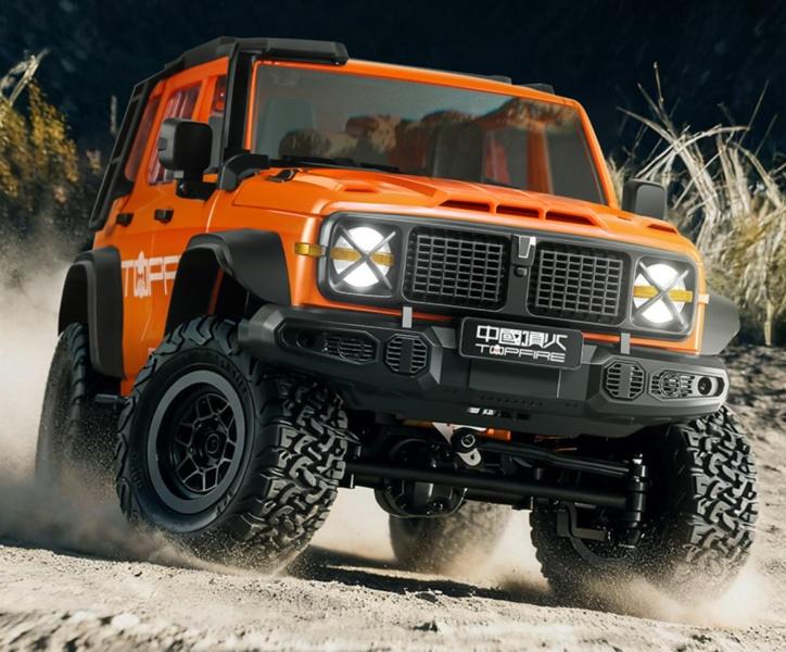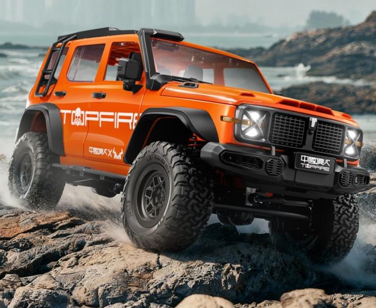 Model je věrnou replikou SUV GWM Tank 300 v atraktivní oranžové barvě a je vybaven funkčním LED osvětlením, které zahrnuje potkávací, obrysová, směrová, brzdová i varovná světla ovládaná pomocí vysílače. Otevírací přední a páté dveře odhalují prostorný úložný prostor. Součástí balení jsou samolepky a vylamovací doplňky pro personalizaci vzhledu, včetně stěračů a klik.