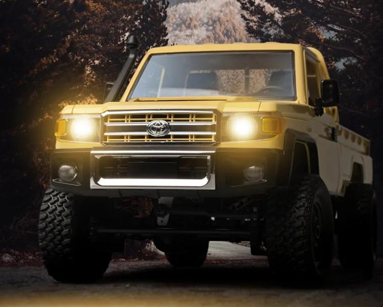 Trialový pick-up na dálkové ovládání s korbou vhodný do náročného terénu, nabízí plynulé řízení, 4x4 pohon a výměnný akumulátor.Model na dálkové ovládání představuje precizně zpracovaný trialový pick-up licencovaný firmou Toyota, vyrobený z odolného plastu s propracovaným designem včetně detailního interiéru kabiny. Korba vozu je praktická, umožňuje ruční sklopení zadní části pro snadnější vykládku, což oceníte při převozu materiálu nebo hraček.