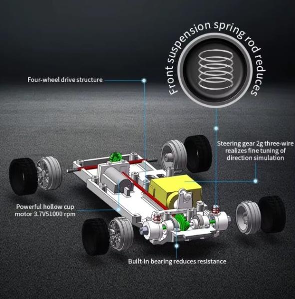 Součástí balení jsou také kužely pro trénink driftování a dvě sady pneumatik, které umožní přizpůsobit vozidlo různým jízdním podmínkám.