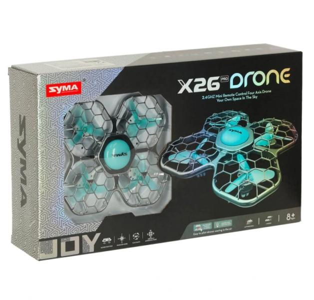 Dron Syma X26PRO nabízí snadné ovládání a spoustu funkcí, které ocení začátečníci i mírně pokročilí uživatelé. Díky barometru udržuje stabilní výšku letu, zatímco čidla proti nárazu pomáhají chránit dron před poškozením při nárazech do překážek. LED osvětlení zajišťuje lepší viditelnost za horších světelných podmínek a přispívá k atraktivnímu vzhledu během letu.