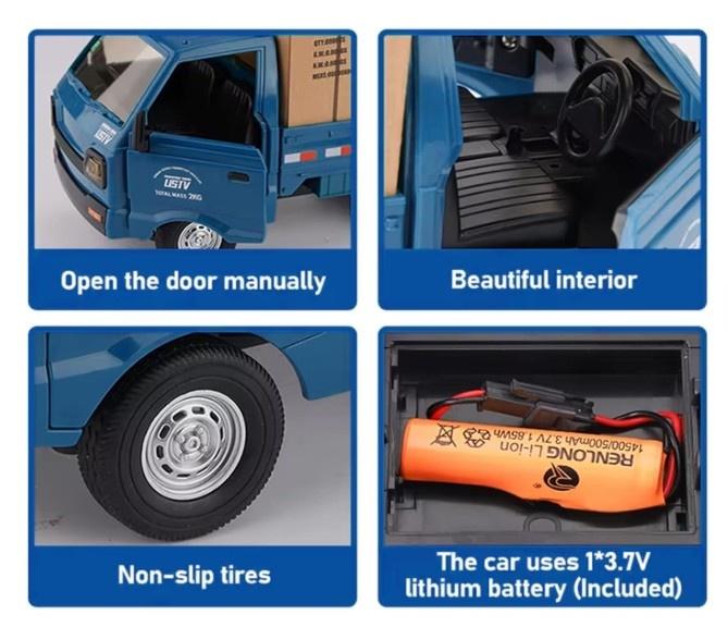 RC nákladné auto v modrej farbe je vhodné pre všetkých, ktorí si chcú užiť zábavu s modelom pripomínajúcim ázijský mestský nákladiak. Vďaka kompaktným rozmerom a priestrannej korbe ponúka možnosti hrania ako v interiéri, tak vonku.