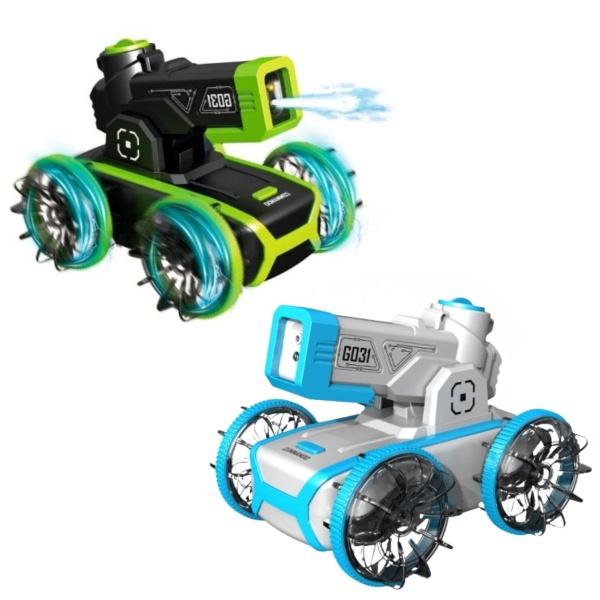 RC autá sú navrhnuté tak, aby zvládli jazdu na súši i plávanie na vode, čo rozširuje možnosti zábavy. Vodné delá fungujú vďaka systému, ktorý umožňuje nasávanie vody priamo z okolia a jej následné vystrekovanie, čo prináša interaktívny prvok hry. Vodotesné prevedenie zaručuje, že autá odolajú nielen striekajúcej vode, ale aj krátkodobému ponoreniu, čo je vhodné na hranie pri bazéne alebo na jazierku.