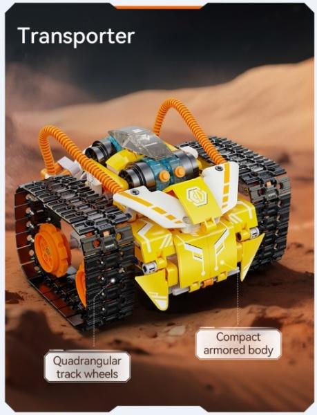 Robot můžete postavit ve třech různých variantách. První je robot, který je vysoký 21,6 cm a připravený zvládnout každou situaci. Další variantou je bitevní tank a třetí možností transportér. Každý z těchto modelů se pohybuje po pásech všemi směry, což zajišťuje lepší stabilitu a ovladatelnost.
