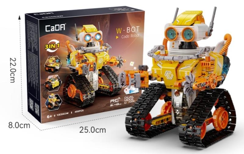 Stavebnice CaDA nabízí široké možnosti tvoření, které podpoří vaši představivost a dovednosti. Sestavit lze krásného a barevného robota W.BOT z celkem 455 dílků, který lze ovládat jak klasickým dálkovým ovladačem, tak i moderní aplikací ve vašem telefonu.