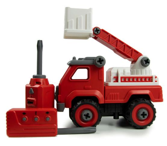 Stavebnica hasičského auta obsahuje 33 dielikov a diaľkové ovládanie s dosahom 15 metrov, vhodná na hranie vnútri aj vonku.