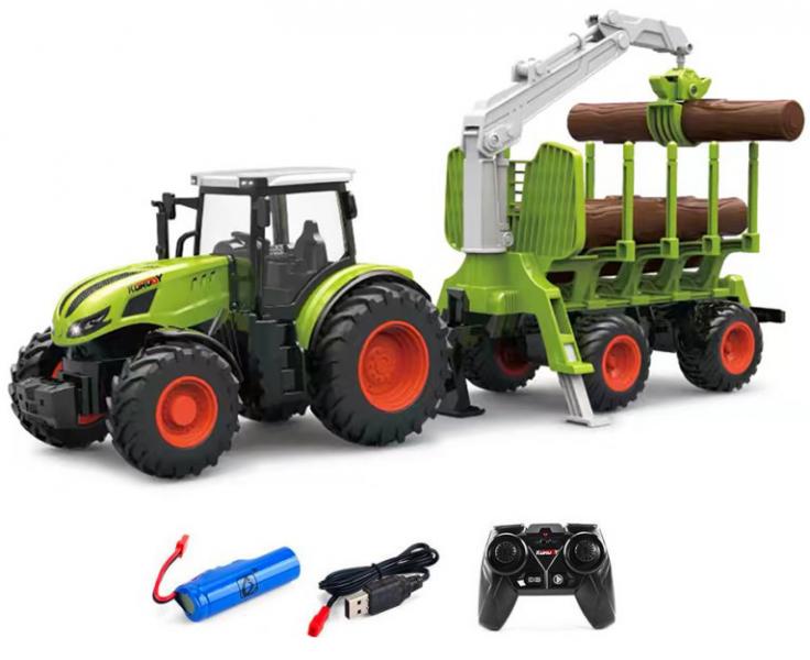 Realistický RC traktor s manuálne ovládaným prívesom a drapákom na drevo, vhodný na hranie doma i vonku s dosahom ovládača 20 metrov.Tento RC traktor s prívesom na drevo v mierke 1:24 ponúka detailné spracovanie a funkčné ovládanie pre zábavu doma i vonku.