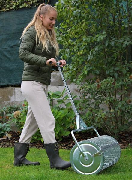 Menší válec na substrát 60/32 s T madlem - PozinkVelmi užitečná věc pro roznos kompostu nebo travního substrátu po vašem trávníku. Objem je 50 l, vhodné pro 35 l zeminy. Zachytí velké kusy, rovnoměrně roznese po vašem trávníku. Ideální v případě přesevu trávníku. Velmi tenkou vrstvou zakryje travní semeno čímž zabráníte zaschnutí klíčků.Šířka: 60 cmPrůměr: 32 cmMadlo TObjem: 50 litrůPozink