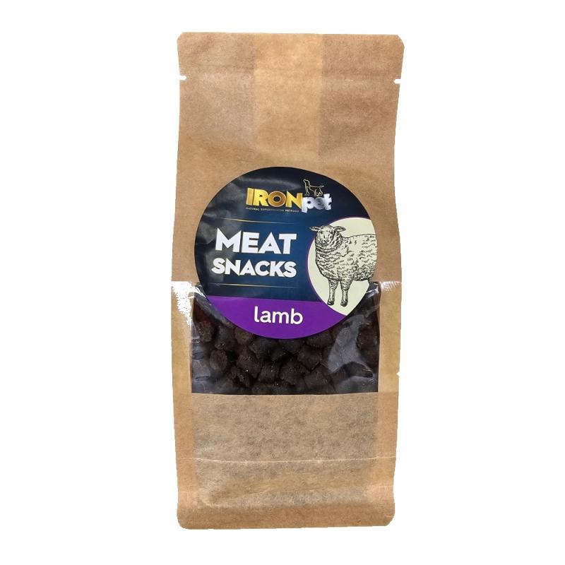 Tréninkové masové pamlsky IRONpet meat snacks s jehněčím.Lahodné masové pamlsky z kvalitního jehněčího jsou ideální odměnou při tréninku i běžném výcviku. Díky své velikosti a měkké konzistenci jsou snadno přijímány psy všech plemen i věkových kategorií.