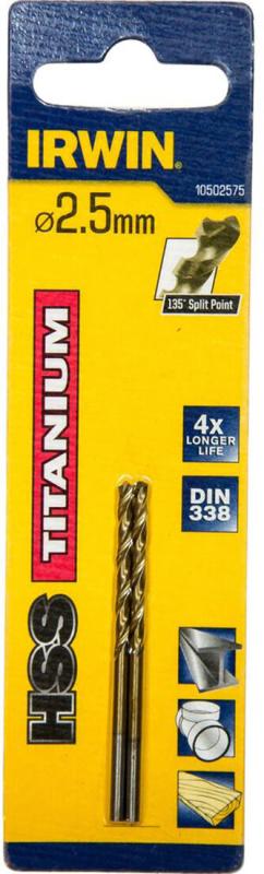 Vrták do kovu HSS TITANIUM 2,5 x 30 / 57 mm ( 2 ks ) IRWINRozměr: 2,5 mm