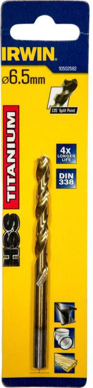 Vrták do kovu HSS TITANIUM 6,5 x 63 / 101 mm IRWINRozměr: 6,5 mm