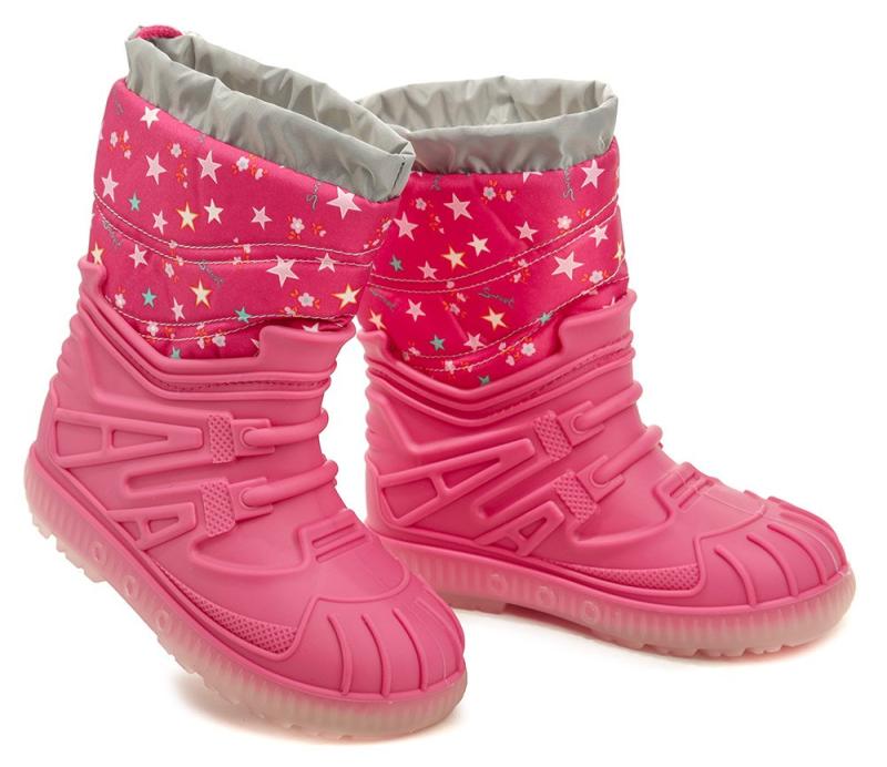 Obuv je vyrobená z kombinácie syntetického a textilného materiálu. Vnútorná časť obuvi je vybavená textilným chlpatým kožušíkom, ktorý tvorí zateplenie. Spodná časť obuvi je celá z jedného odliatku, ktorý zabezpečuje vodeodolnosť. K spodnému odliatku je prišitý vrchný nádstavec so zateplením.