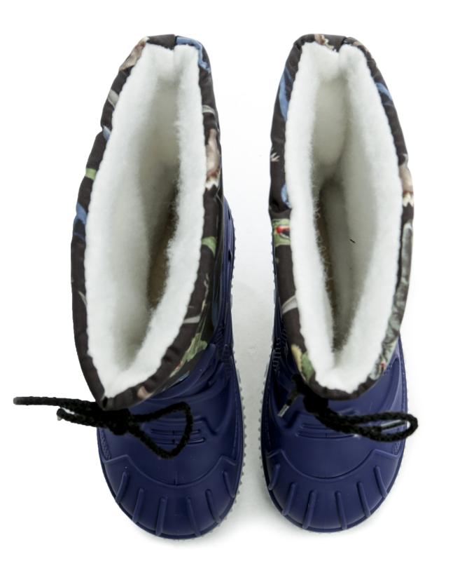 Obuv je vyrobená z kombinácie syntetického a textilného materiálu. Vnútorná časť obuvi je vybavená textilným chlpatým kožušíkom, ktorý tvorí zateplenie. Spodná časť obuvi je celá z jedného odliatku, ktorý zabezpečuje vodeodolnosť. K spodnému odliatku je prišitý vrchný nádstavec so zateplením.