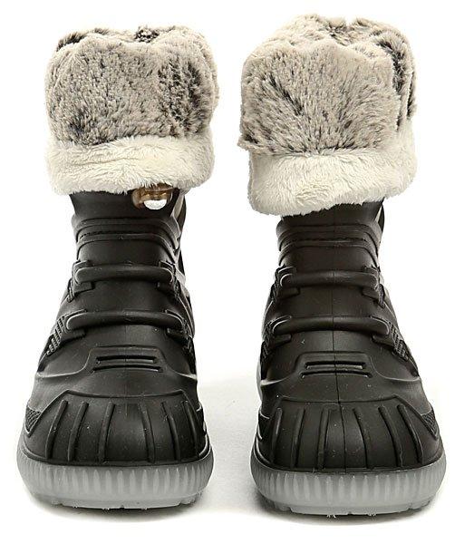 Obuv je vyrobená z kombinácie syntetického a textilného materiálu. Vnútorná časť obuvi je vybavená textilným chlpatým kožušíkom, ktorý tvorí zateplenie. Spodná časť obuvi je celá z jedného odliatku, ktorý zabezpečuje vodeodolnosť. K spodnému odliatku je prišitý vrchný nástavec so zateplením. V prípade veľkej zimy je možné golier narovnať a ochrániť pred mrazom nohu ešte lepšie.
