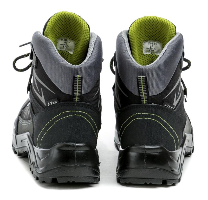 J-Tex - materiál s membránou, která zabraňuje proniknutí vody dovnitř a přitom umožňuje obuvi dýchat a odvádět vlhkost ven, tím udrží nohu v suchu a teple.