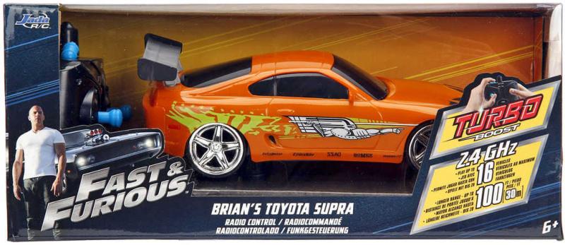 Brianovo RC auto Toyota Supra na dálkové ovládání z akčního filmu Rychle a zběsile, pro všechny jeho fandy. 2 kanály (jezdí vpřed, vzad, vlevo a vpravo). Turbo funkce. Hračka na baterie.Autko na dálkové ovládání, pro všechny malé závodníky, kteří milují dobrodružství. Radio control model (RC) - Auto rádiem řízené. Auto na dálkové ovládání musí mít doma každý kluk! Je to dobrodružství a