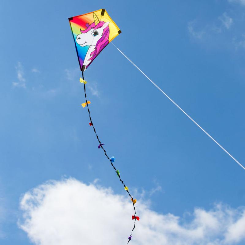 Lietajúci drak Jednorožec jednošnúrový je veľmi ľahko ovládateľný a patrí medzi deťmi obľúbené lietajúce draky.