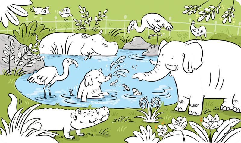 Titul obsahuje 10 krásně barevných stran s obrázky. Po aplikaci vody se barva objeví a po zaschnutí opět zmizí, obrázky lze díky tomu malovat opakovaně. Pero na vodu je součástí balení.