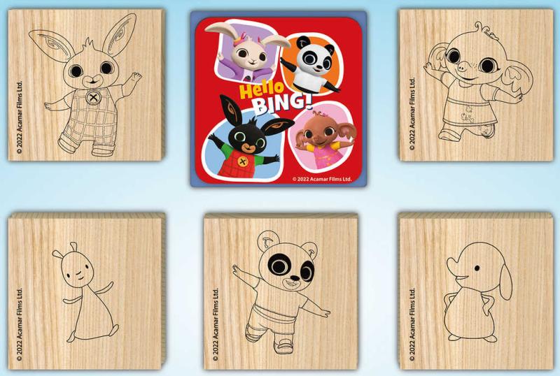 Set obsahuje 5 snadno uchopitelných dřevěných razítek s motivem králíčka Binga, barevnou podušku a sedmibarevnou skládací voskovku pro vybarvování.Rozměry balení (š v h): 21 x 28 x 1,5cm