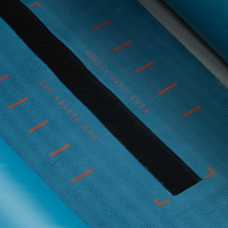 Technologie Drop-Stitch a EVA paluba: Podlaha kajaku je vyrobena pomocí technologie Drop-Stitch, která zajišťuje vysokou tuhost a odolnost, podobnou pevným kajakům. EVA paluba o tloušťce 3 mm poskytuje komfortní povrch pro nohy a zlepšuje celkový zážitek z pádlování.