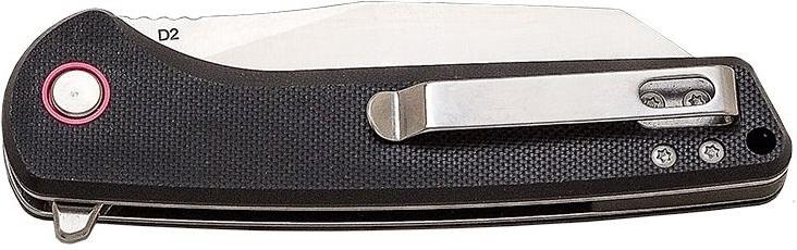 Tento kapesní zavírací nůž nabízí kombinaci odolnosti, preciznosti a praktického designu vhodného pro každodenní použití i náročnější úkoly. Čepel typu drop point je vyrobena z nástrojové nerezové oceli D2, která se vyznačuje vyšší tvrdostí, dobrou houževnatostí a odolností proti opotřebení, což zajišťuje dlouhou životnost a spolehlivost při řezání.