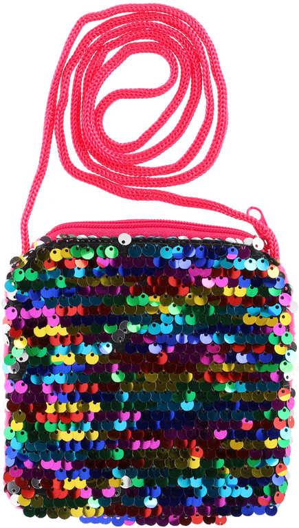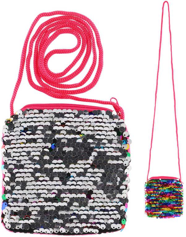 Kabelka dětská s barevnými flitry 11x12cm se změnou vzhledu látková růžová