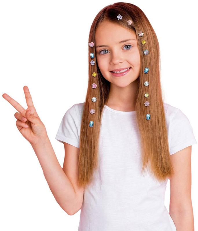 Kamínky diamanty do vlasů, kadeřnický zkrášlovací set s aplikátorem. Obsahuje 24 diamantů a 24 spon.Tato kreativní hračka je skvělým dárkem pro všechny malé parádnice, které si rády upravují vlasy a chtějí jim dodat trochu třpytivého kouzla. Zkrášlovací sada Teddies obsahuje 24 barevných diamantů, 24 spon a praktický aplikátor, díky kterému je připevnění ozdob do vlasů snadné a bezpečné. Děti si tak mohou samy vytvořit originální účesy a rozvíjet svou fantazii i jemnou motoriku. Sada Třpytivé diamanty do vlasůje zábavná aktivita pro malé milovnice módy a vlasového stylingu od 5 let.