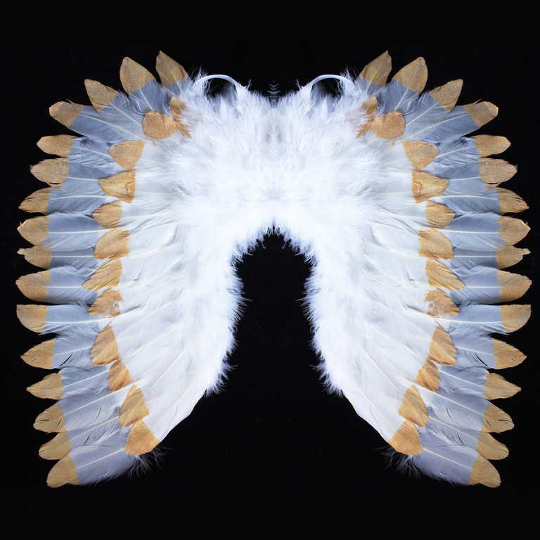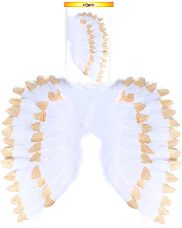 KARNEVAL Andělská křídla s peřím bílo-zlatá (karnevalový doplněk)