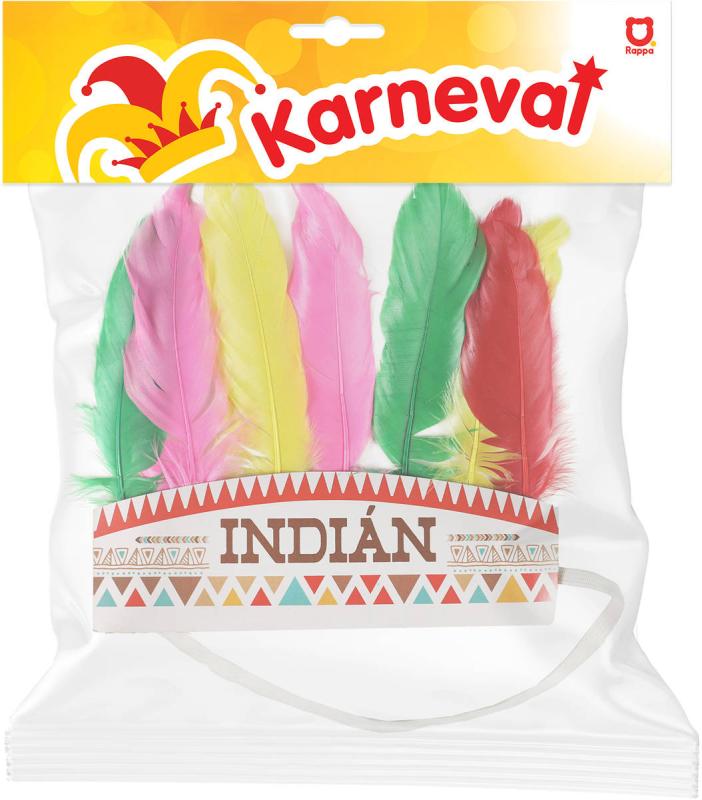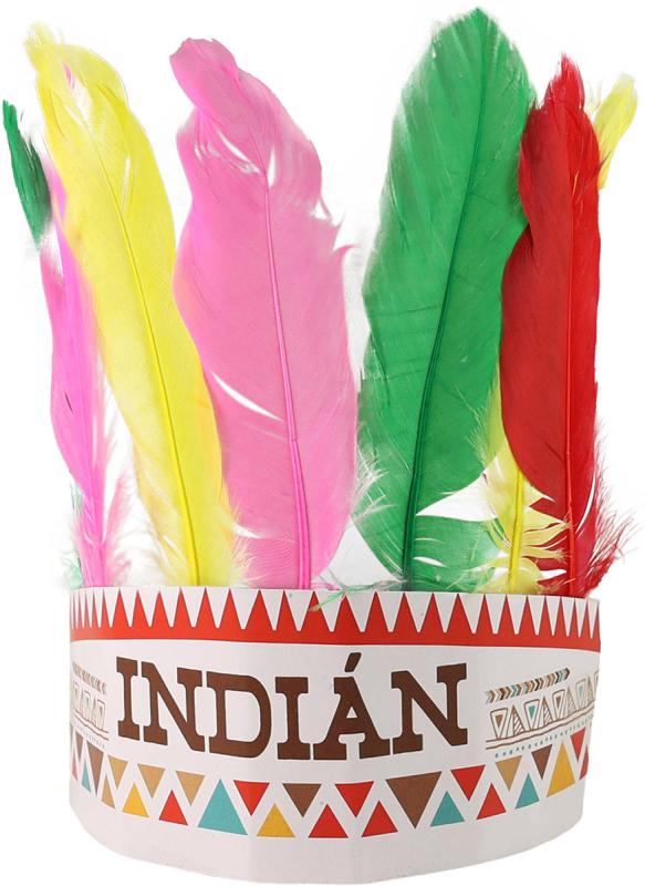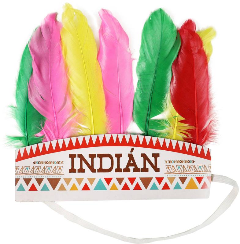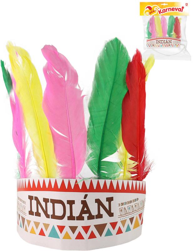 Indiánská čelenka s barevným peřím, karnevalový doplněk ke kostýmu.