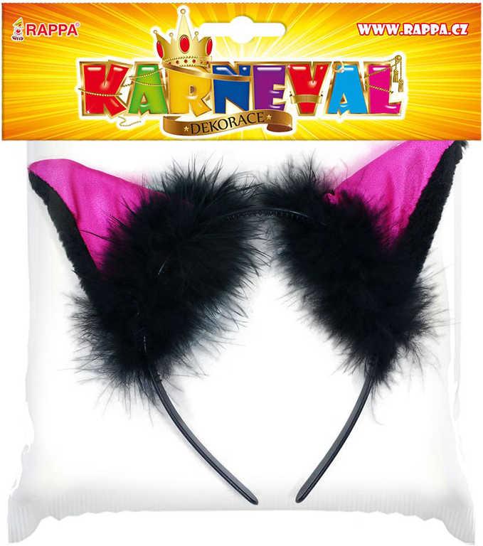 Karnevalová čelenka s kočičíma ušima růžovo-černé barvy a peřím je perfektním doplňkem ke kostýmu kočky.Karneval neboli masopust (v původním slova smyslu "opuštění masa" (slovo karneval pochází nejspíš z italského carne levare, "dát pryč maso"), tedy začátek postního období před Velikonocemi. Karnevalový rej začíná 6. ledna a končí na Popeleční středu. Někdy to jsou poslední dny před koncem karnevalu, kdy lidé organizují různé hlučné výstupy, zábavy a parády, oblékají karnevalové kostýmy. Lidově též fašank. V současném slova smyslu jde o taneční zábavy, hýření, lidové zábavy v maskách, maškarní bály.