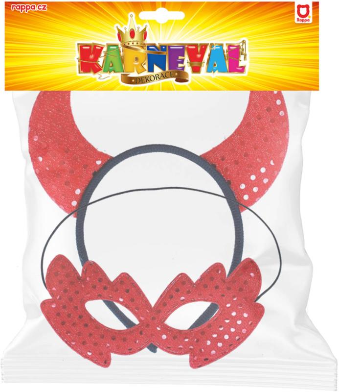 KARNEVAL Čertí rohy + škraboška čertice (karnevalový doplněk)
