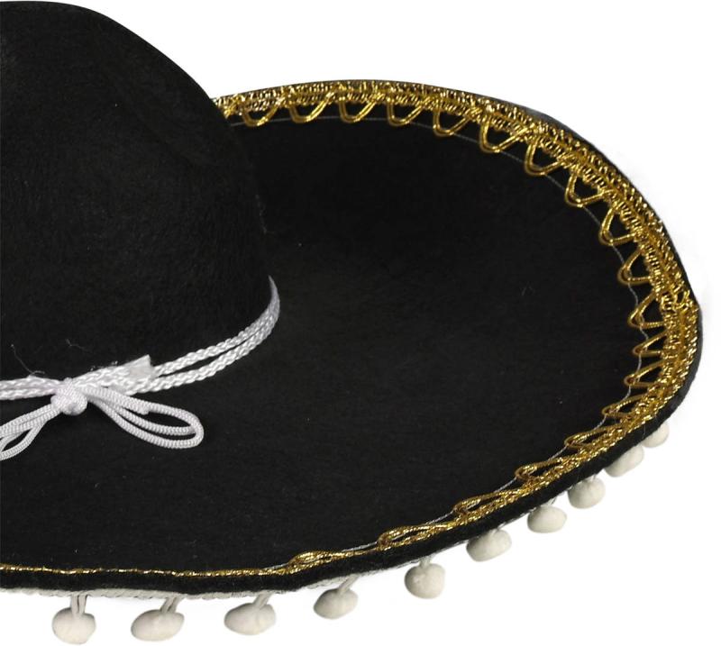 Černé sombréro s bílými bambulkami a se šňůrkou je slušivý doplňkem ke kostýmu Mexičana. Černé sombréro můžete nosit jako součást mexického kostýmu nebo kostýmu na téma západu. Tento klobouk Vám dodá autentičnost a působivý vzhled.