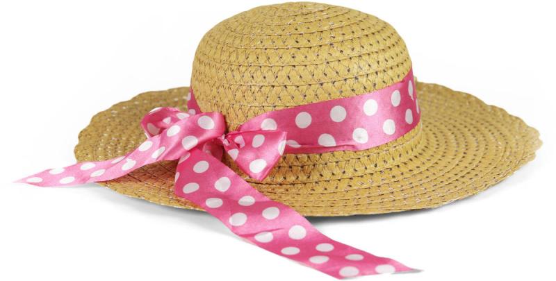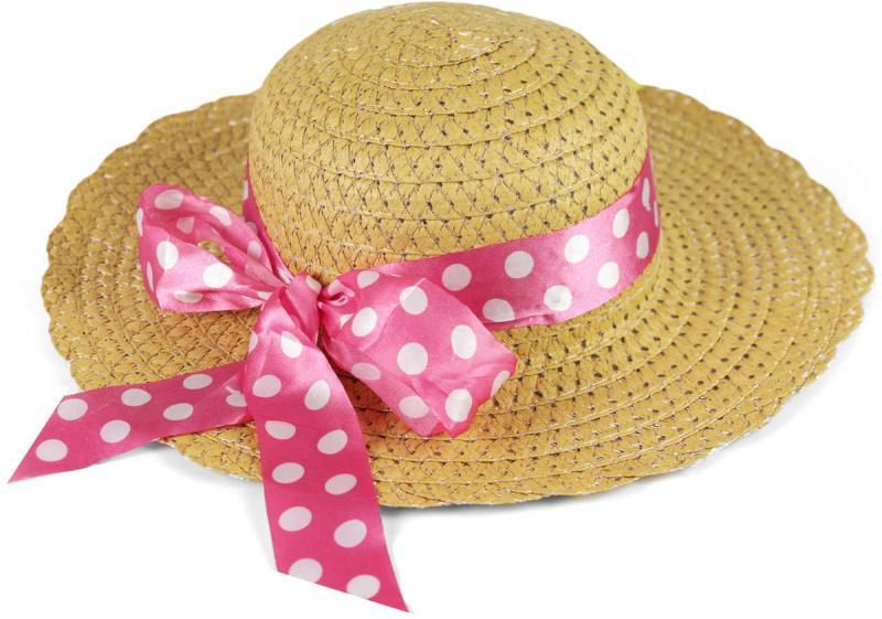 Krásný slaměný klobouk slamák pro malé parádnice. Tento parádní kousek je navíc zdoben růžovou stužkou s bílými puntíky. Obvod klobouku je cca 53cm.