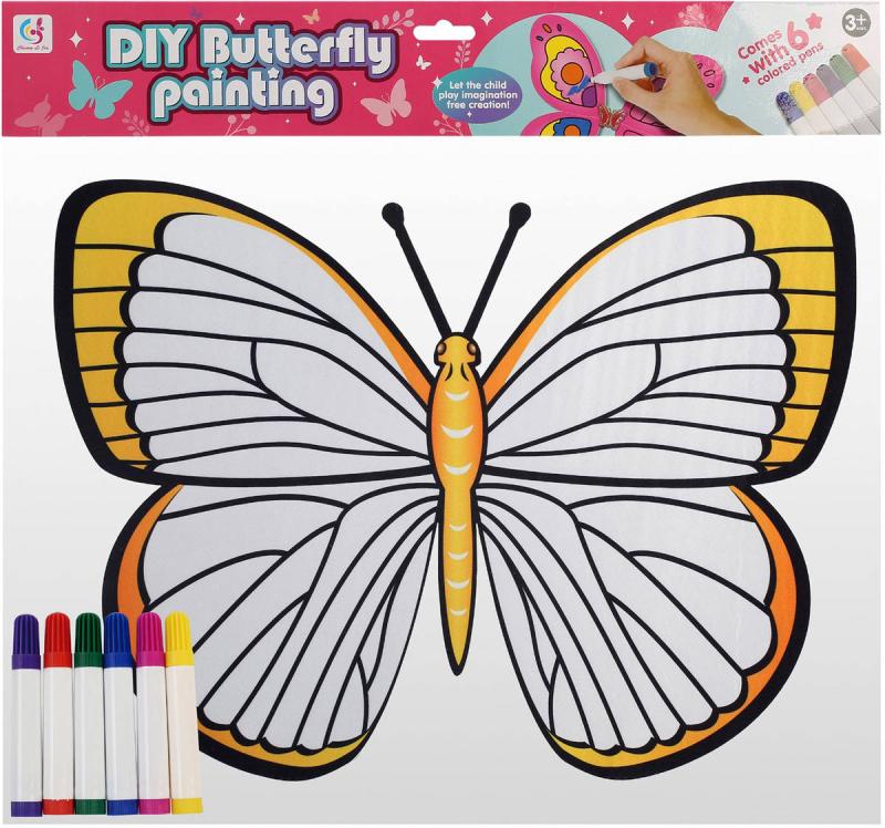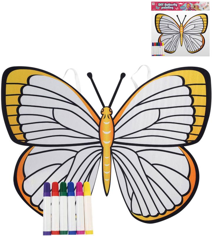 Obsah balení: motýl k vybarvení, barevné fixy 6x