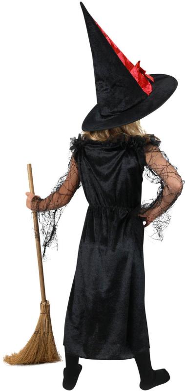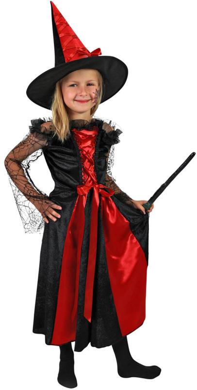 Roztomilý karnevalový kostým černo-červené barvy udělá radost každé holčičce! Souprava obsahuje šaty s pavučinkovými rukávy a klobouk s mašlí. Set ve velikosti S je určen pro holčičky ve věkovém rozmezí 3-6 let. Vhodný i na oslavu Halloweenu!