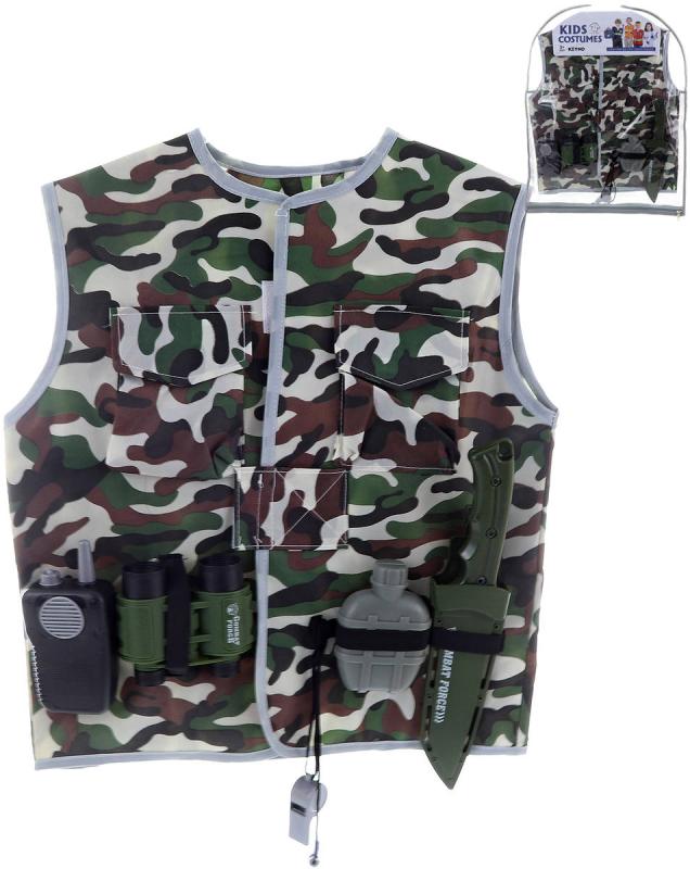 KARNEVAL Šaty maskáčová vesta voják set s doplňky KOSTÝM
