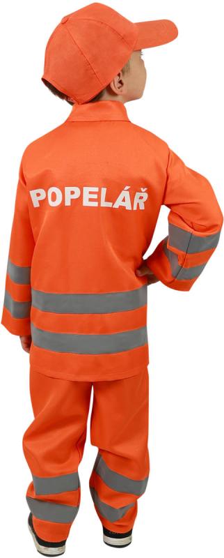 Dětský karnevalový doplněk - kostým Popelář, věk 6-8 let, výška postavy 116-128cm. Součástí setu je čepice, blůza a kalhoty. Eko balení.Být popelářem, tak to byl v dětství sen skoro každého malého chlapce! S tímto exkluzivním dětským kostýmem se v něj proměníte během chvilky! Sada obsahuje čepici, blůzu s nápisem POPELÁŘ a kalhoty s reflexními pruhy.