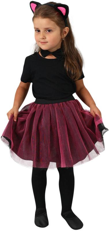 Roztomilý karnevalový kostým s motivem kočky. Kostýmek v černo-růžové barvě je určen pro holčičky ve věkovém rozmezí 3-7 let. Balení obsahuje sukýnku, čelenku s oušky, ocásek a motýlka na krk.