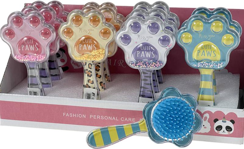 Kartáč dětský hřeben na vlasy s konfetami zvířecí tlapka 4 barvy