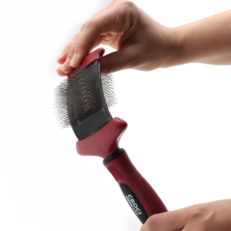 - Oboustranný design – jedna strana pro rozčesávání a odstranění uvolněných chlupů, druhá pro uhlazení a lesk srsti