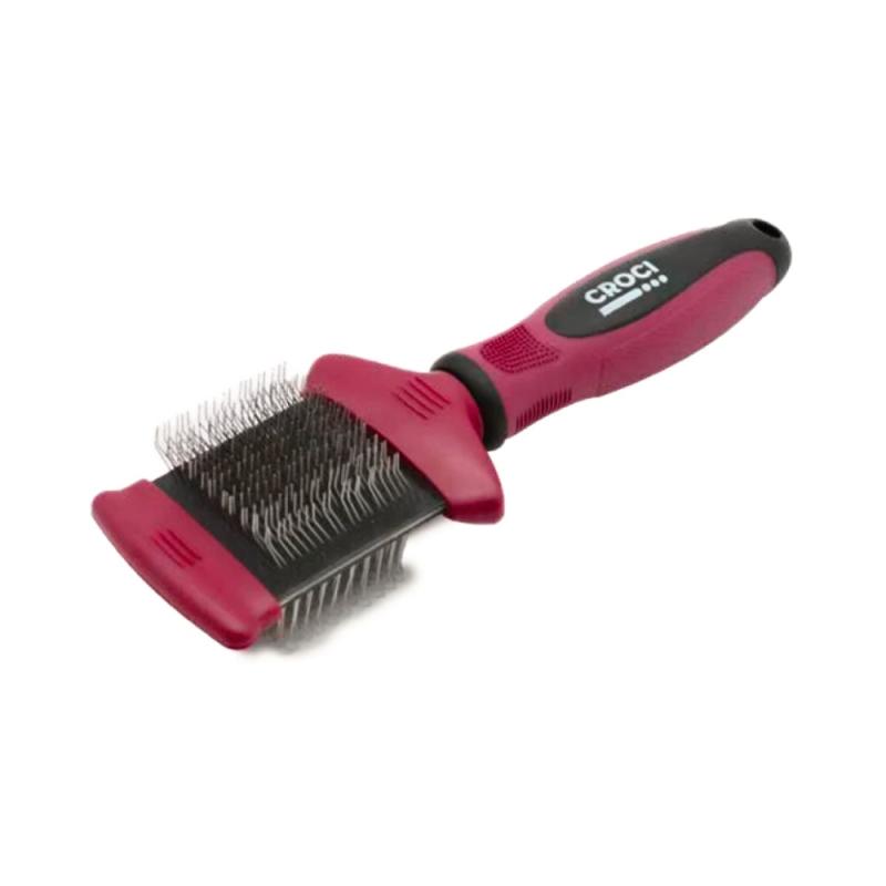 Praktický a šetrný kartáč pro kompletní péči o srst psů a koček. Díky oboustrannému provedení kombinuje dvě funkce v jednom nástroji – rozčesávání a uhlazování srsti, zatímco flexibilní hlavice se přizpůsobí tvaru těla zvířete a zaručuje maximální komfort i při delším česání.