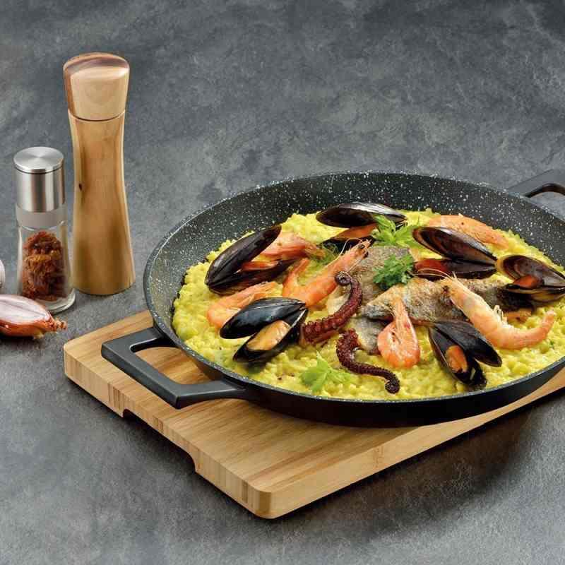 - velká paella pánev je ideální k přípravě španělské speciality Paella, dále pak zeleniny, masa, uzenin, steaků, burgerů nebo ryb, následně lze jakékoliv suroviny zapékat v troubě a připravit tak celý oběd nebo večeři na jednom kusu nádobí- speciálně vyvinutý antiadhézní povrch StellaNova© s vlastností Oil Control System