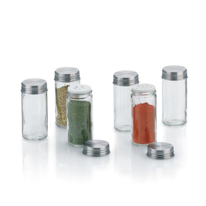 Sada šesti kořenek z čirého skla s nerezovými víčky nabízí praktické a přehledné uskladnění koření v kompaktním provedení. Zobrazit celý popis