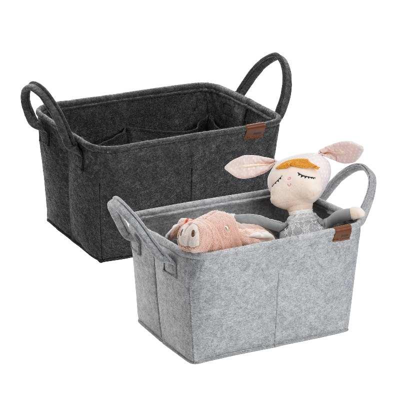Filcový materiál je lehký a zároveň dostatečně pevný, což umožňuje snadné přenášení koše i jeho stabilní tvar. Tmavě šedá barva je neutrální a snadno zapadne do různých interiérů, přičemž materiál se dobře udržuje. Koš je ideální pro ty, kdo hledají jednoduché a funkční řešení pro ukládání věcí bez zbytečného prostoru navíc.